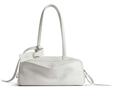 あえてきっちり閉じないデザイン。自然に開いたその隙間から、内側にエンボス加工で施された“Balenciaga”ロゴがさりげなく覗く。この控えめな主張が、バッグという分類名称に上品な余韻を与えている。