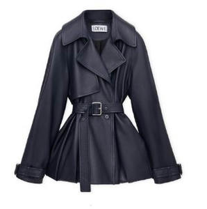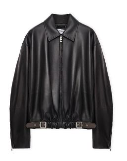 男女共通で着用できる「ベルテッド ジャケット」。ミリタリー由来のボンバージャケットをベースに、シャープな襟とギャザーを寄せた裾が特徴的なレザージャケットだ。ウエスト部分に配されたレザーベルトが全体を引き締め、構築的でありながらも柔らかな印象を生み出している。この計算されたバランス感覚こそ、LOEWEらしいデザインアプローチと言えるだろう。