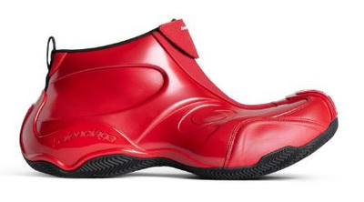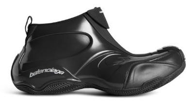 2025年夏のランウェイショーで初めて披露された、バスケットボールシューズを再構築した革新的なデザインのスニーカーです。特徴的なのは、前から見ると幅広でぽってりとした印象を与えるシルエットですが、横から見ると波打つようなくびれを持ち、全体的にユニークな曲線美を感じさせます。このデザインは、バスケットボールシューズ本来の機能性を持ちながらも、バレンシアガらしい未来的な印象を与えるように仕上げられています。